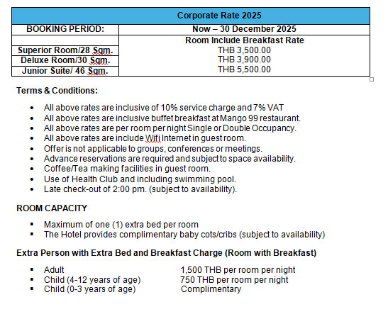 | Corporate Room 2025 | Room Include Breakfast Rate |